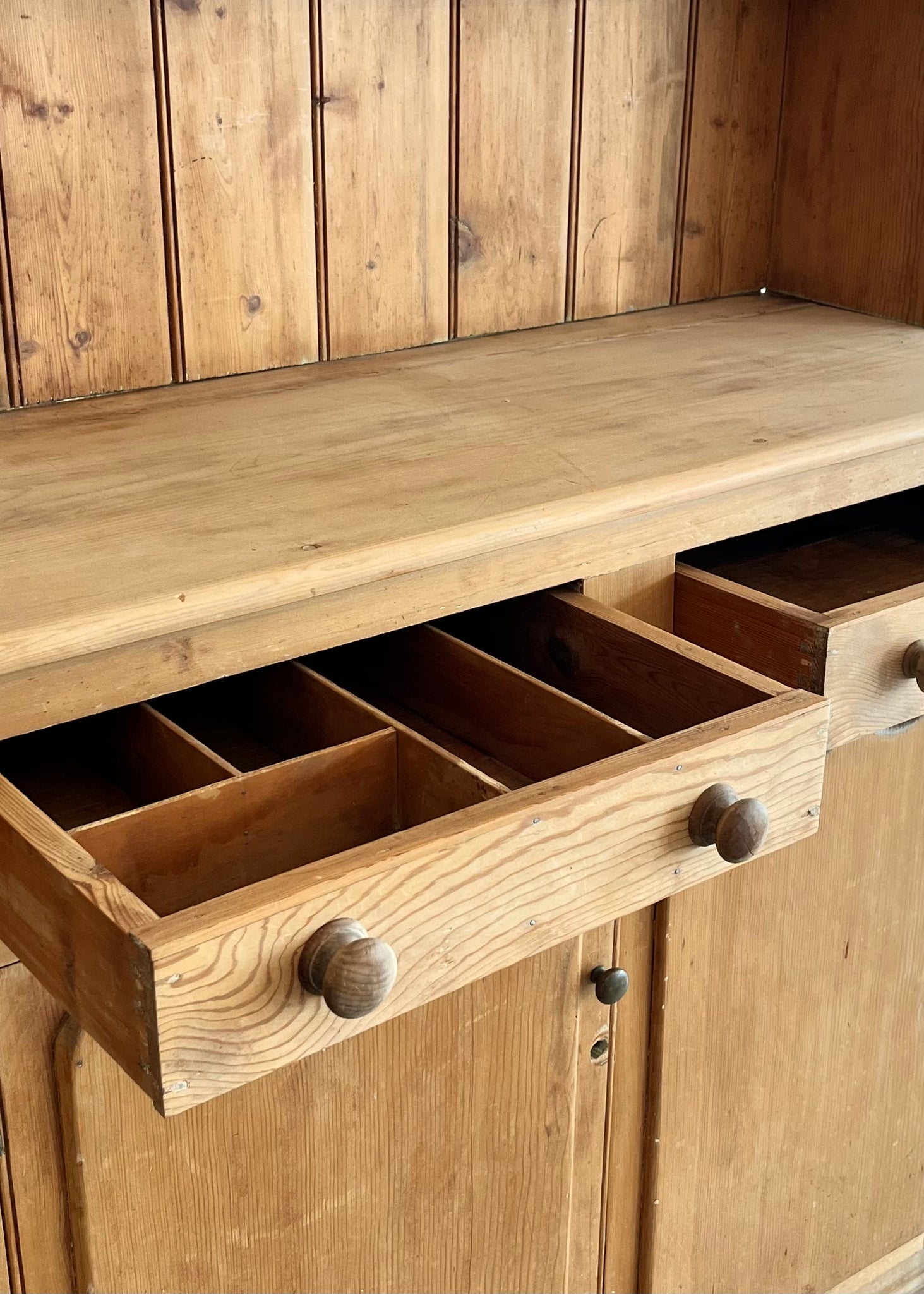 two half drawers, and lower shelving with shield doors, offering plenty of storage