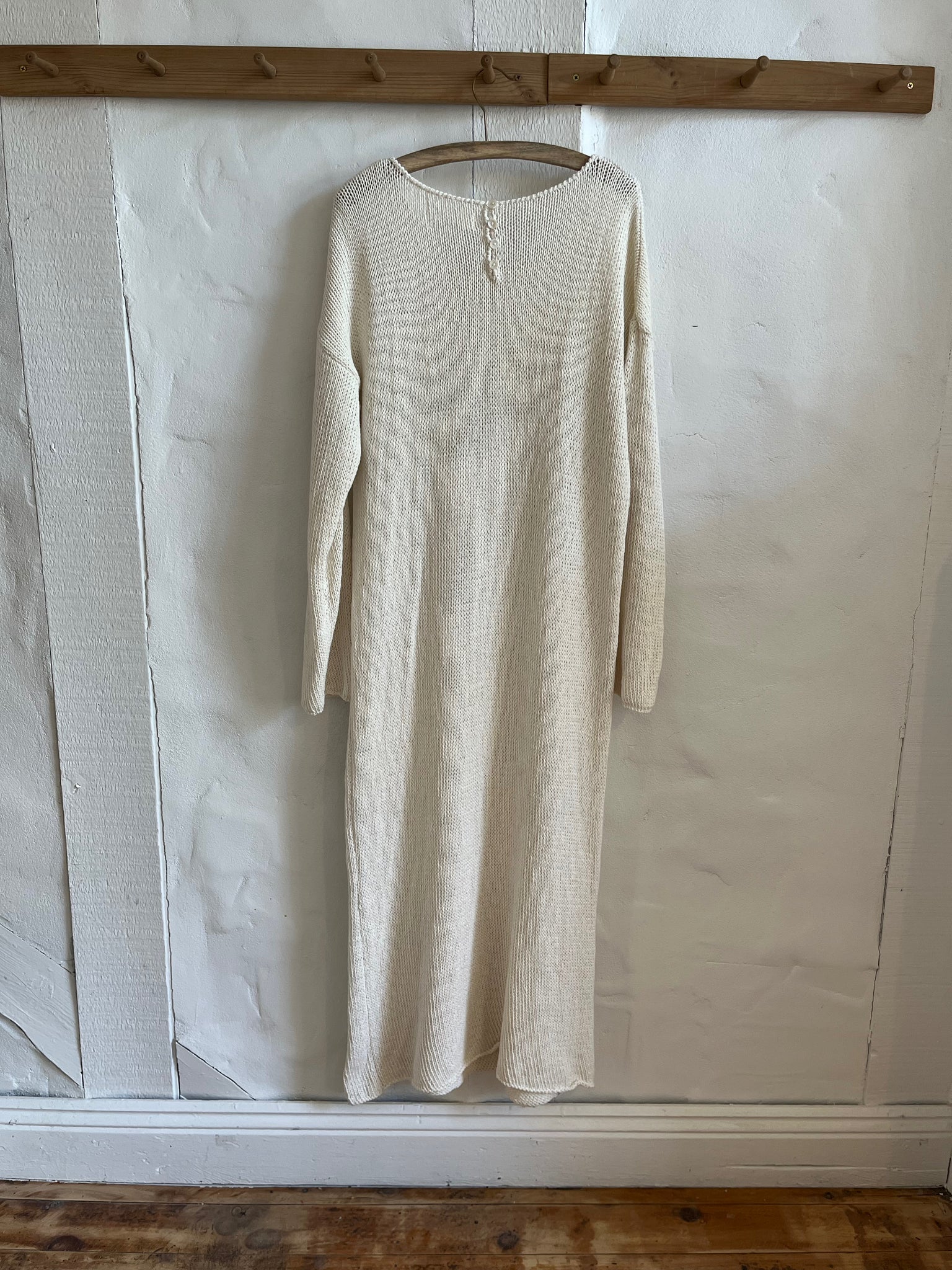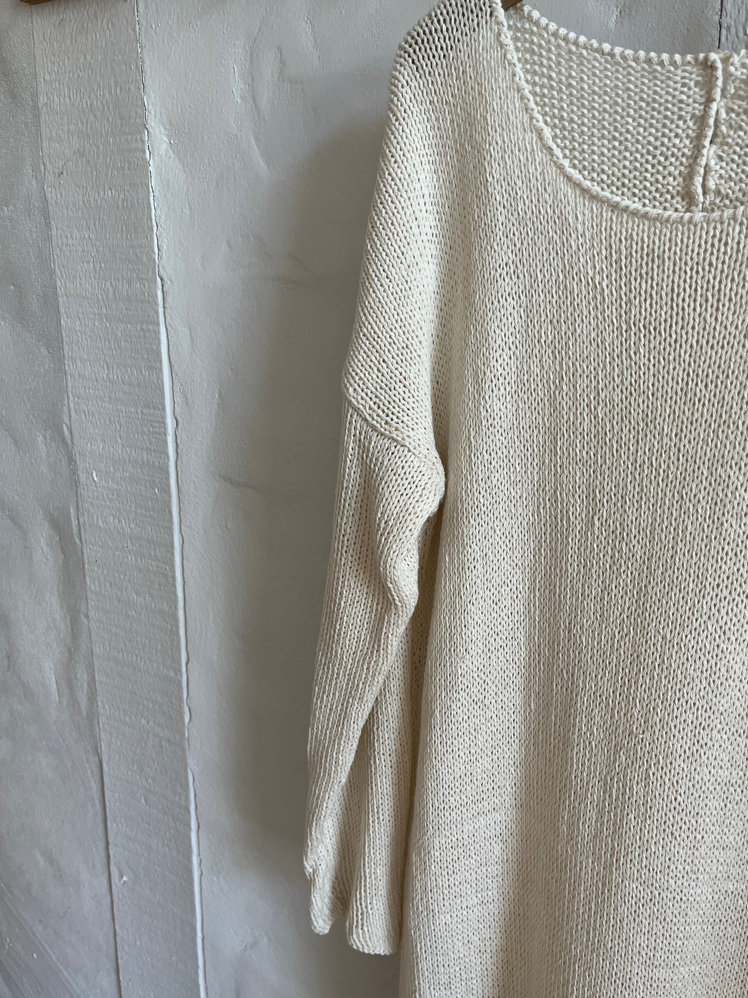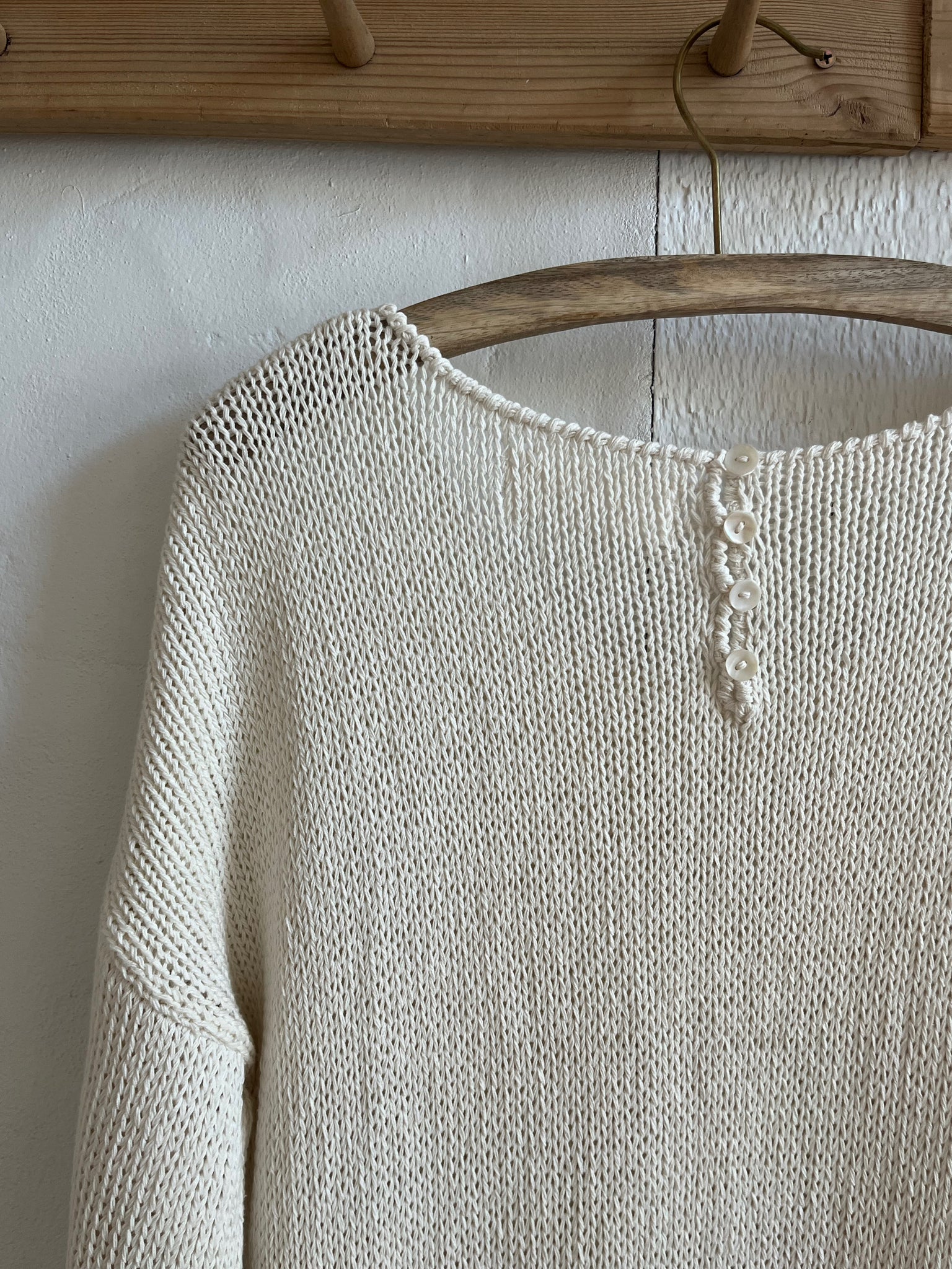 hand knitted organic cotton singlet. Semi fitted style, delicate shell buttons on the side