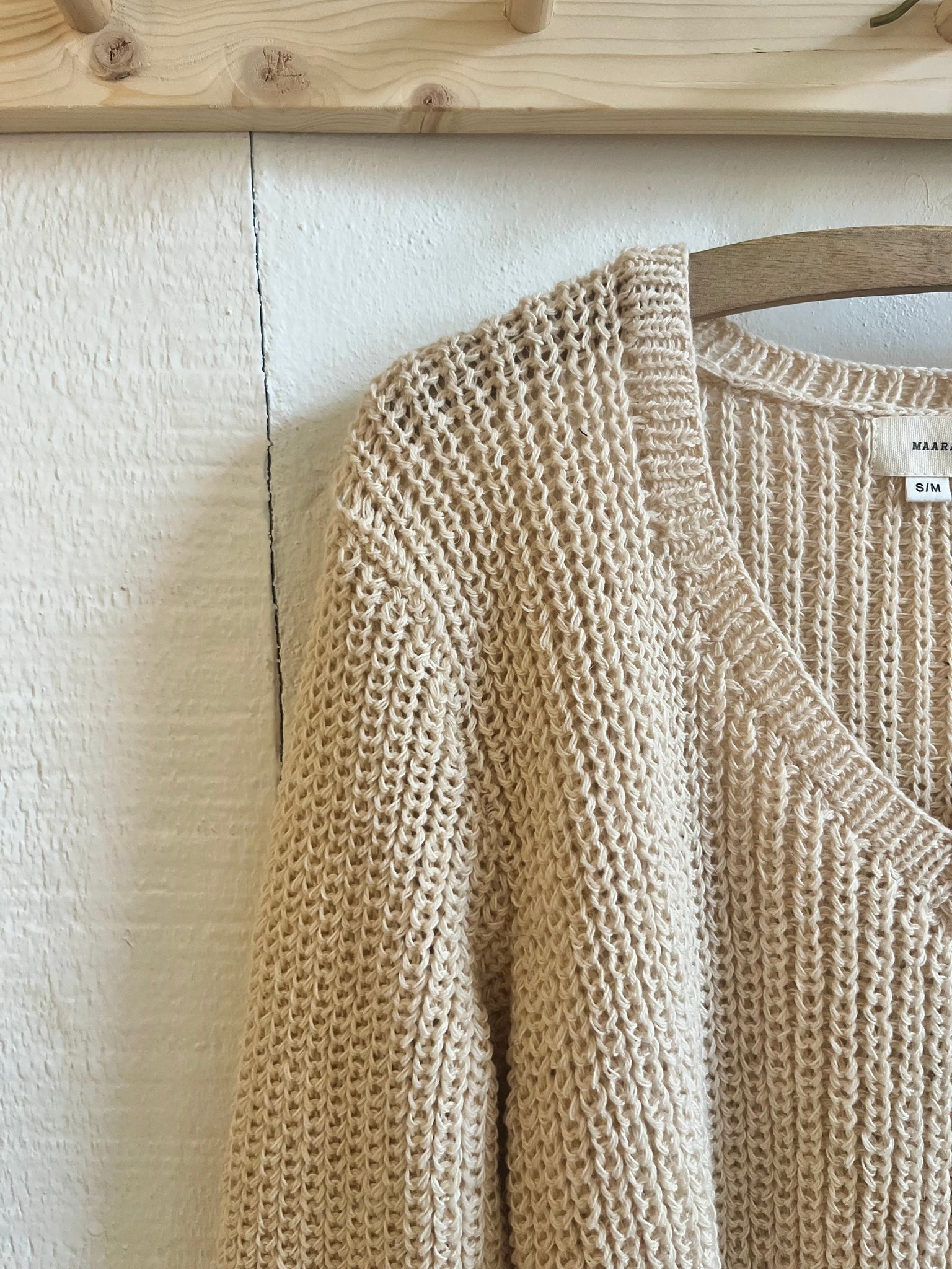 HAND KNITTED WOOL SWEATER V NECK - UNDYED