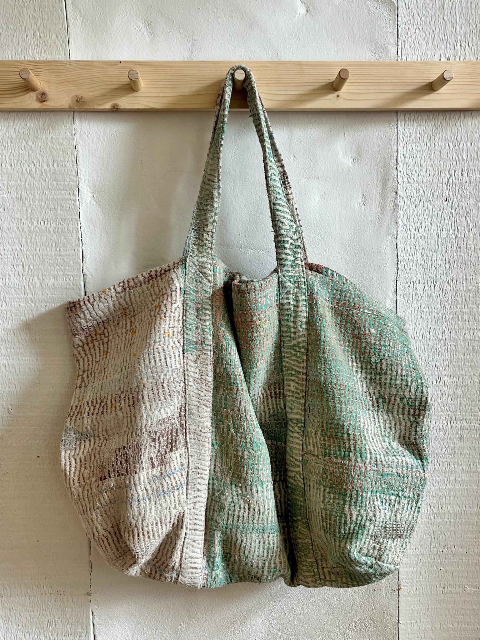 Each piece is one of a kind. Perfect for the beach, grocery shop, or as an overnight bag.