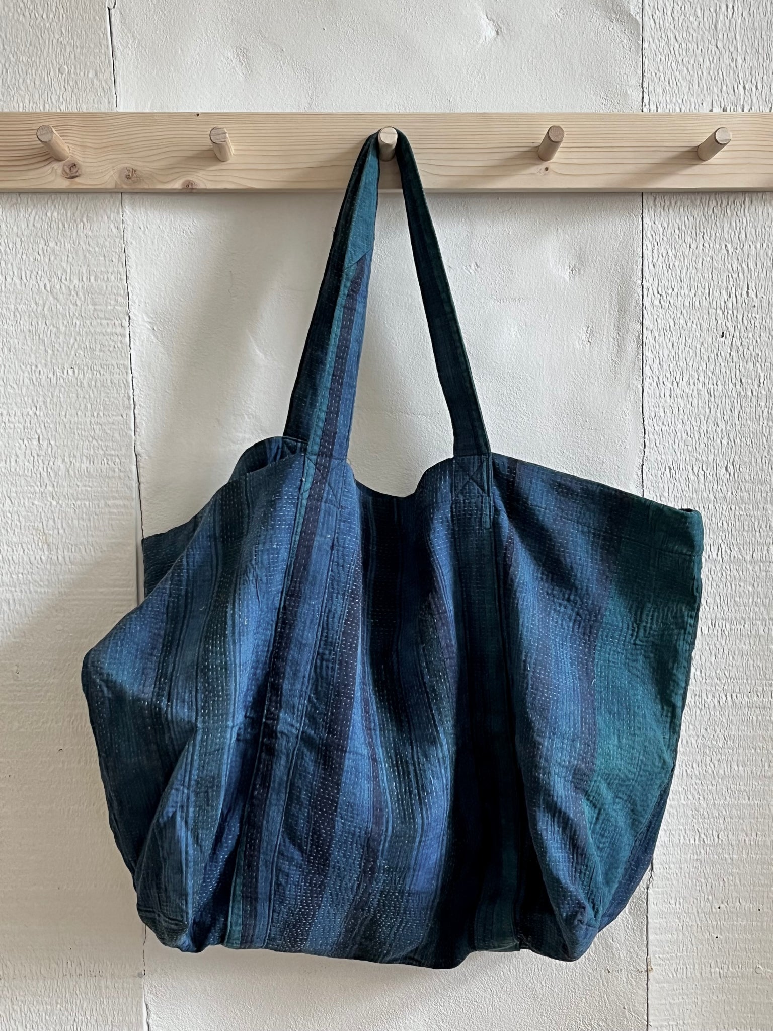 Each piece is one of a kind. Perfect for the beach, grocery shop, or as an overnight bag.