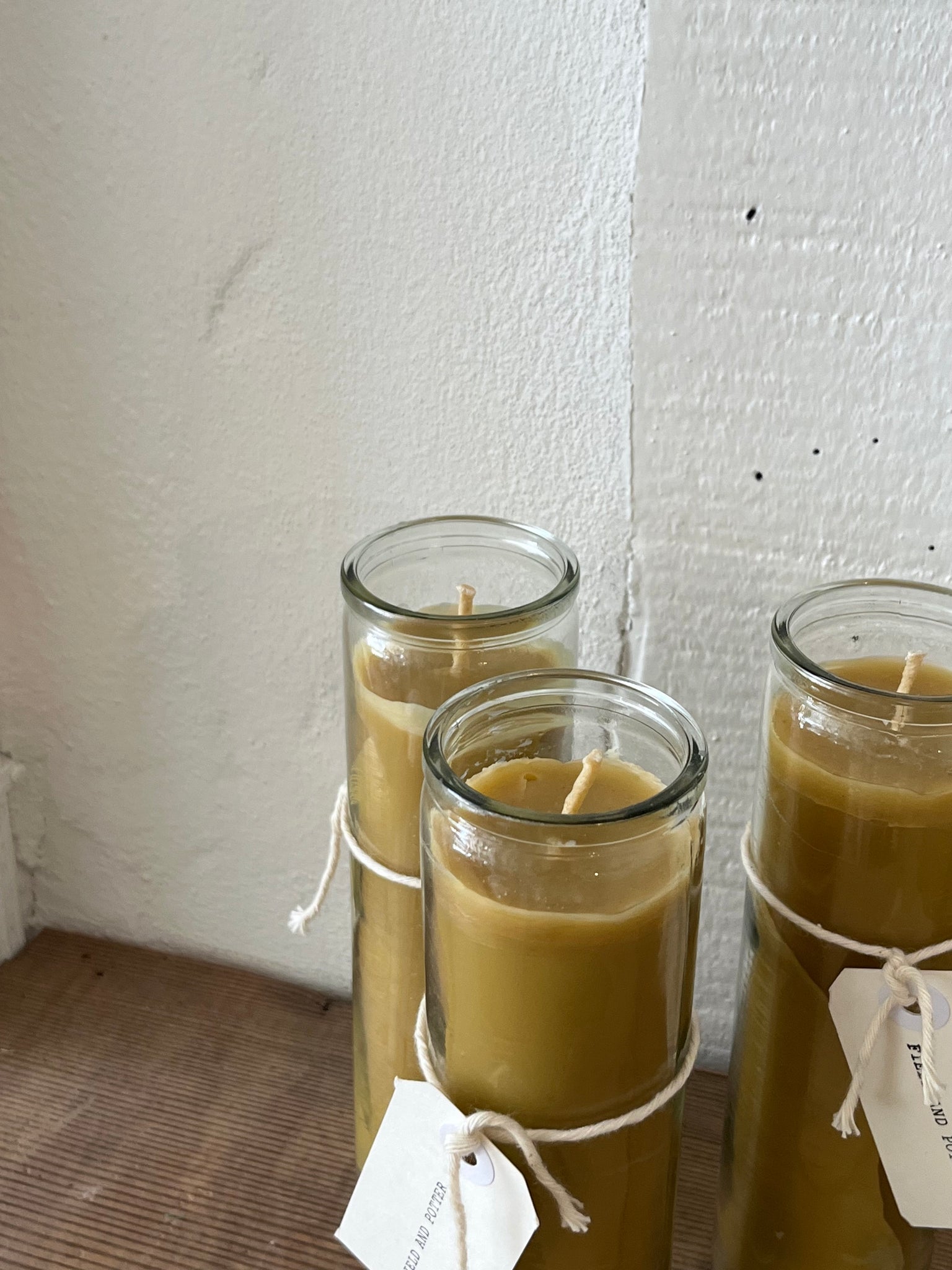 Hand-poured altar candles, made from 100% natural beeswax collected from local Australian honeybees. Poured in our studio.