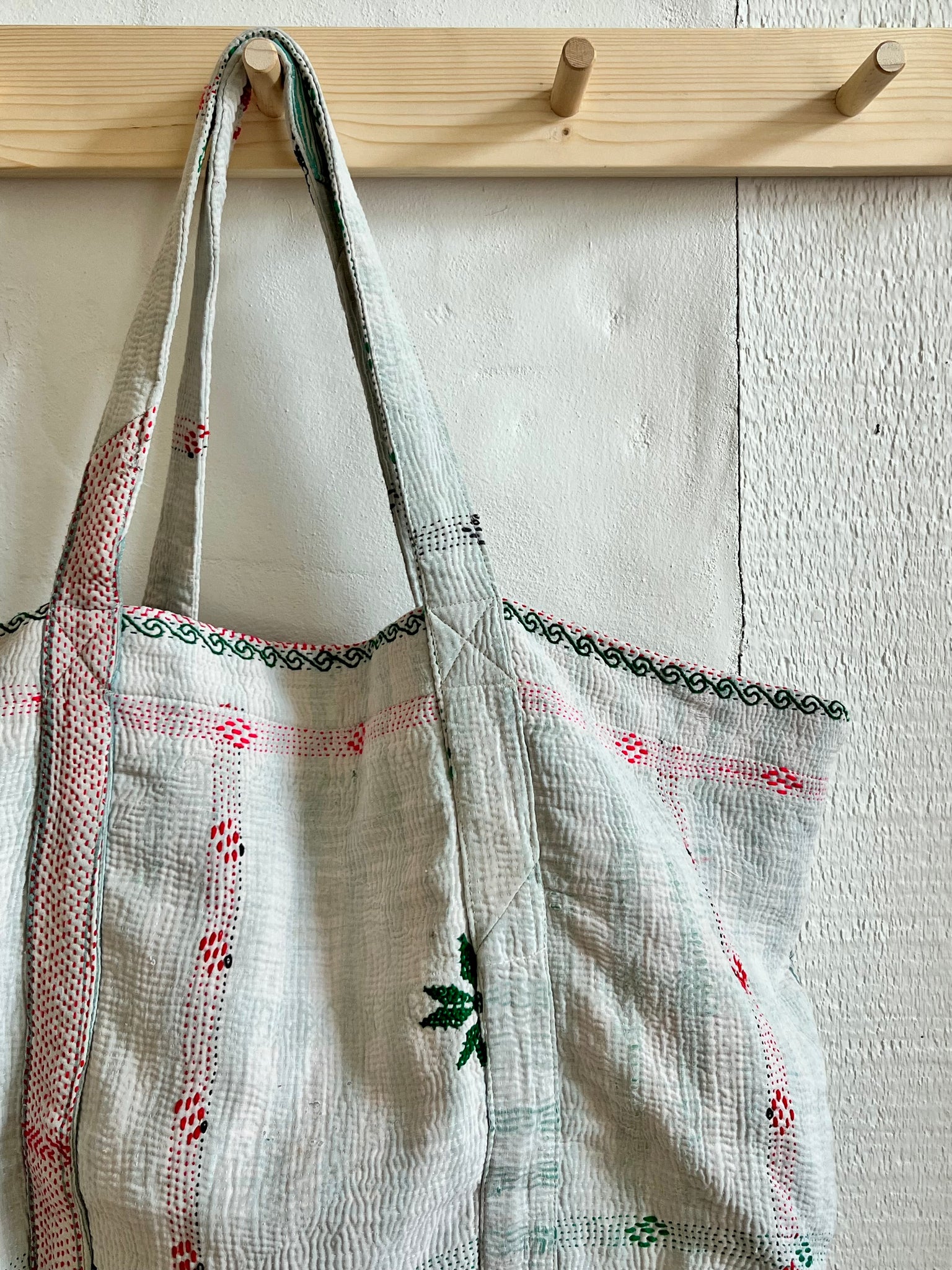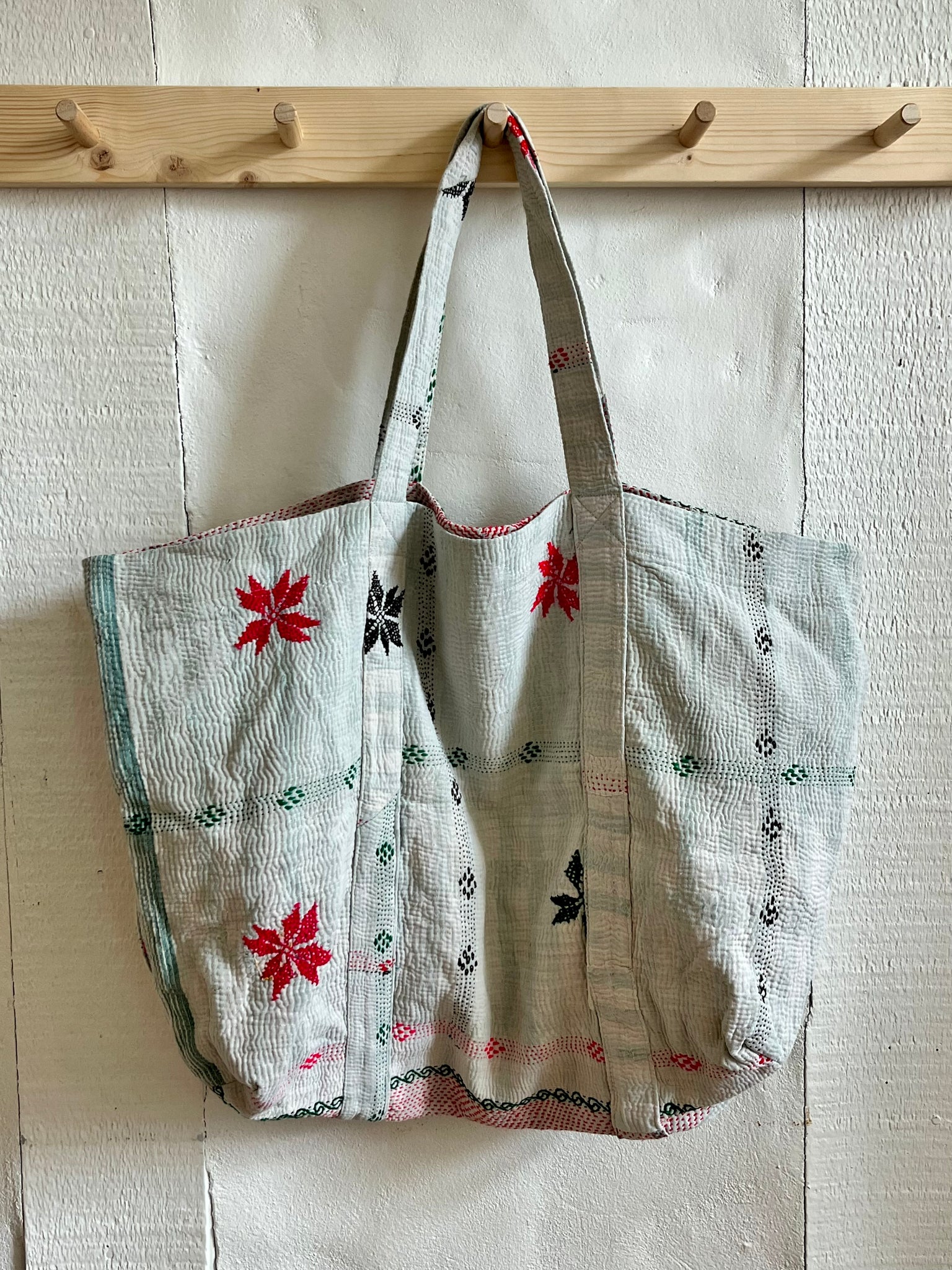 Each piece is one of a kind. Perfect for the beach, grocery shop, or as an overnight bag.