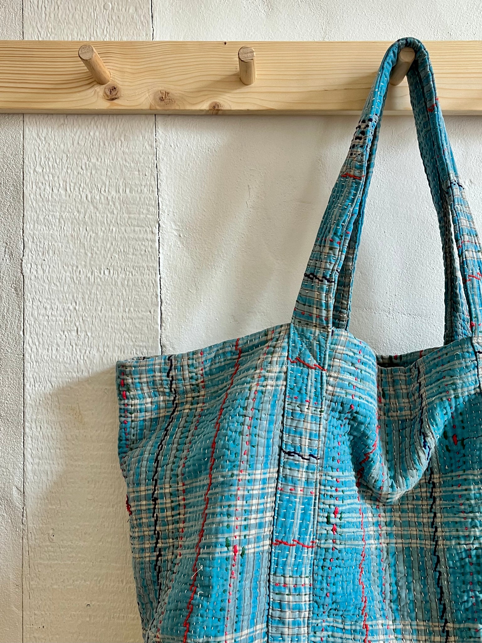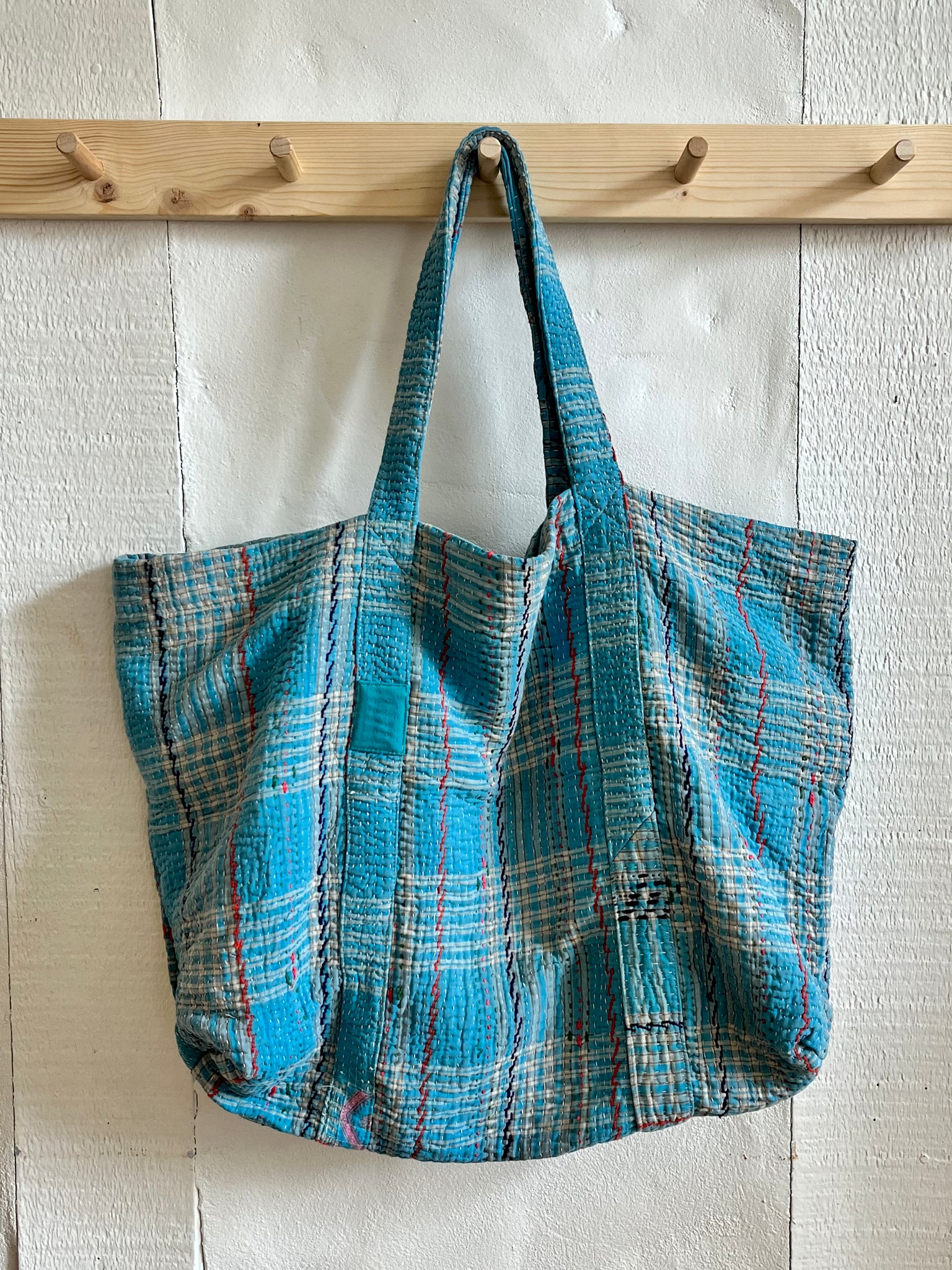 Each piece is one of a kind. Perfect for the beach, grocery shop, or as an overnight bag.